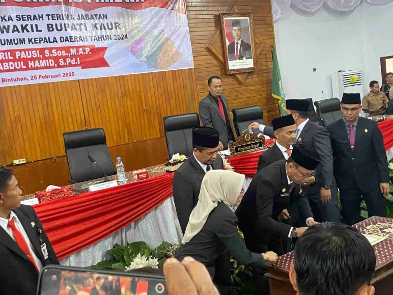Kaur, Mediasinardunia.com - 25 Februari 2025 – Dewan Perwakilan Rakyat Daerah (DPRD) Kabupaten Kaur menggelar Sidang Paripurna Istimewa dalam rangka Serah Terima Jabatan (Sertijab) Bupati dan Wakil Bupati Kaur pada Selasa, 25 Februari 2025. Acara ini menandai transisi kepemimpinan dari Bupati dan Wakil Bupati Kaur periode 2021-2025 kepada pemimpin baru yang akan menjabat untuk periode 2025-2030.