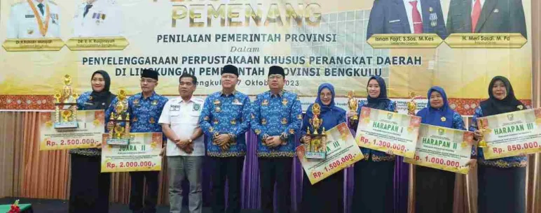 Bengkulu, Mediasinardunia.com - Gubernur Bengkulu, Rohidin Mersyah, meminta setiap Organisasi Perangkat Daerah (OPD) untuk membangun perpustakaan guna meningkatkan literasi. Permintaan ini disampaikan oleh Gubernur Rohidin saat memberikan hadiah kepada pemenang perlombaan Perpustakaan Khusus Perangkat Daerah di Lingkungan Pemerintah Provinsi Bengkulu. Perlombaan ini diikuti oleh 39 OPD di Bengkulu, namun masih terdapat puluhan OPD yang belum memiliki perpustakaan.