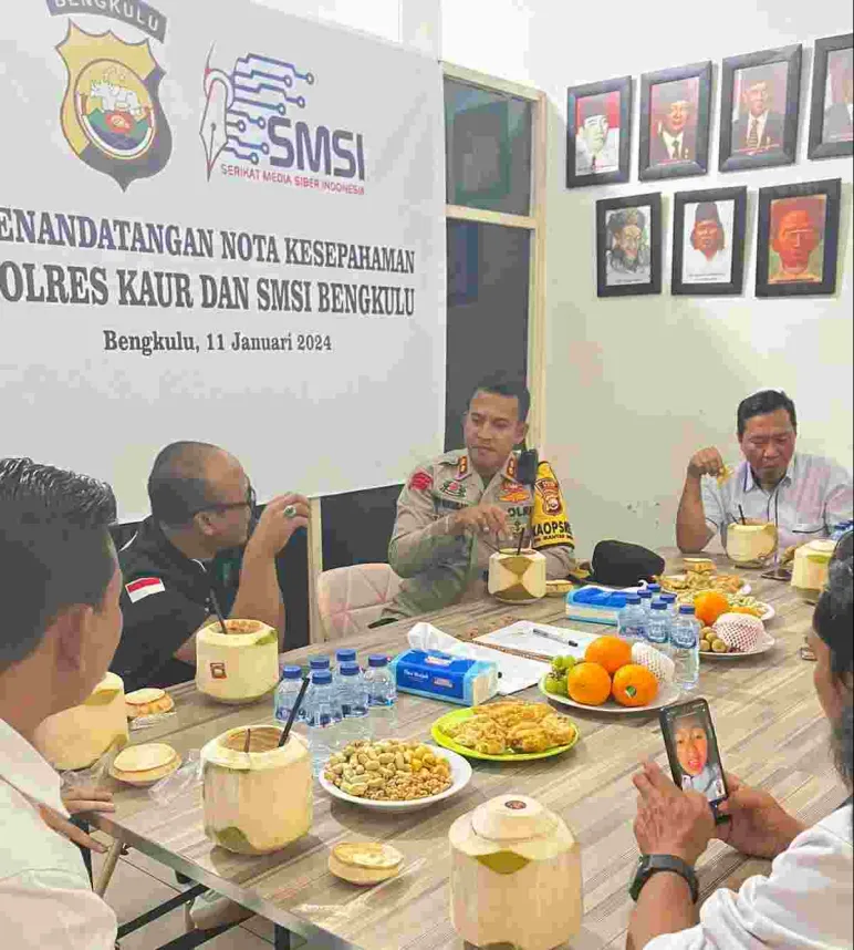 Ketua SMSI Bengkulu Wibowo Susilo menyambut baik kunjungan Kapolres Kaur, dan siap memperkuat sinergi. Dalam kunjungan itu, dilakukan penandatanganan nota kesepahaman atau MoU antara Polres Kaur dan SMSI Bengkulu.