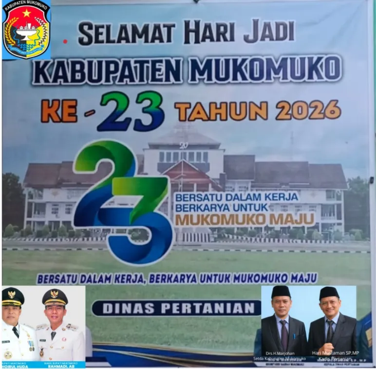 Kepala Dinas Pertanian Mengucapkan Selamat Ulang Tahun Kabupaten Mukomuko yang Ke-23 (Alfian T/Mediasinardunia.com) Banner Kepala Dinas Pertanian Mengucapkan Selamat Ulang Tahun Kabupaten Mukomuko yang Ke-23 17 Feb 2026 05:22 Submitted by webadmin on 17 February 2026 Mukomuko Mukomuko HUT Mukomuko Ke-23 Dinas Pertanian Berita Terkait Feb 26, 2026 Kepala Dinas PUPR Mukomuko Mengucapkan Selamat Hari Jadi Kabupaten Mukomuko yang ke-23 Feb 25, 2026 Dinas pertanian kabupaten Mukomuko mengucapkan selamat hari jadi kabupaten Mukomuko ke - 23 Tahun 2026 Feb 24, 2026 Dinas pendidikan dan kebudayaan sekolah SD negeri 04 air Manjuto Kabupaten Mukomuko Mengucapkan Dirgahayu Kabupaten Mukomuko Ke - 23 Feb 18, 2026 Sekda Kabupaten Mukomuko Mengucapkan Selamat Hari Jadi Kabupaten Mukomuko yang Ke-23 Feb 17, 2026 Dinas Pendidikan dan Kebudayaan SDN 14 Penarik Kabupaten Mukomuko Mengucapkan Dirgahayu Kabupaten Mukomuko yang Ke-23 Feb 17, 2026 Kepala Madrasah MTSN 2 Mukomuko Mengucapkan Dirgahayu Kabupaten Mukomuko yang Ke-23