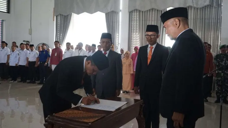 Bengkulu Tengah, Mediasinardunia.com - Pemerintah Kabupaten Bengkulu Tengah resmi melaksanakan pelantikan dan pengambilan sumpah jabatan Sekretaris Daerah (Sekda) Drs. Tomi Marisi, M.Si., bertempat di Pendopo Bukit Kandis pada Rabu (21/01/2026). Prosesi sakral tersebut dipimpin langsung oleh Bupati Bengkulu Tengah serta disaksikan oleh unsur Forkopimda dan Kepala Organisasi Perangkat Daerah (OPD).