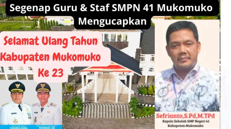 Segenap Guru Beserta Staf SMPN 41 Mukomuko Mengucapkan Selamat Ulang Tahun Kabupaten Mukomuko yang Ke-23 (Alfian T/Mediasinardunia.com) Banner Segenap Guru Beserta Staf SMPN 41 Mukomuko Mengucapkan Selamat Ulang Tahun Kabupaten Mukomuko yang Ke-23 17 Feb 2026 05:29 Submitted by webadmin on 17 February 2026 Mukomuko SMPN 41 Mukomuko HUT Mukomuko Ke-23 Mukomuko Berita Terkait Feb 26, 2026 Kepala Dinas PUPR Mukomuko Mengucapkan Selamat Hari Jadi Kabupaten Mukomuko yang ke-23 Feb 25, 2026 Dinas pertanian kabupaten Mukomuko mengucapkan selamat hari jadi kabupaten Mukomuko ke - 23 Tahun 2026 Feb 24, 2026 Dinas pendidikan dan kebudayaan sekolah SD negeri 04 air Manjuto Kabupaten Mukomuko Mengucapkan Dirgahayu Kabupaten Mukomuko Ke - 23 Feb 18, 2026 Sekda Kabupaten Mukomuko Mengucapkan Selamat Hari Jadi Kabupaten Mukomuko yang Ke-23 Feb 17, 2026 Dinas Pendidikan dan Kebudayaan SDN 14 Penarik Kabupaten Mukomuko Mengucapkan Dirgahayu Kabupaten Mukomuko yang Ke-23 Feb 17, 2026 Kepala Madrasah MTSN 2 Mukomuko Mengucapkan Dirgahayu Kabupaten Mukomuko yang Ke-23