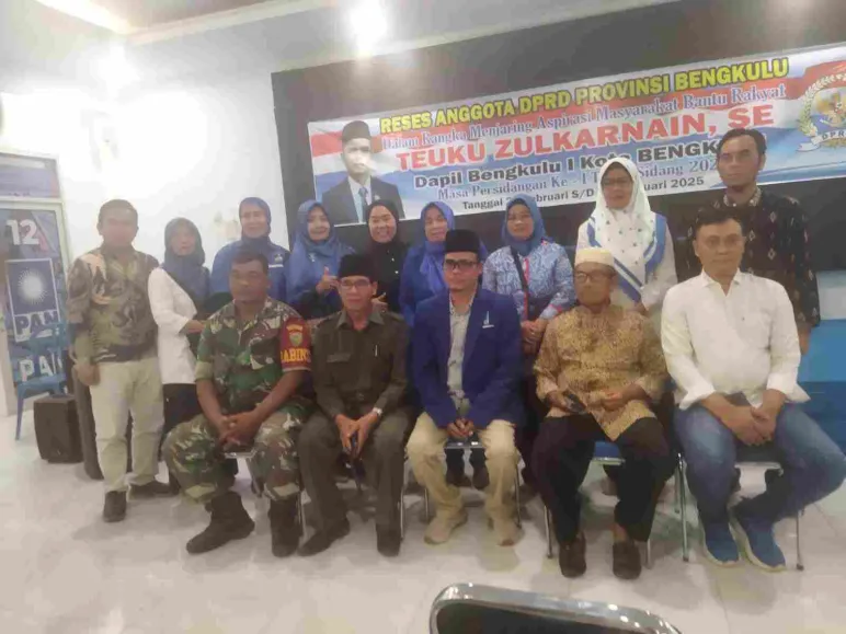 Bengkulu, Mediasinardunia.com - Anggota Dewan Perwakilan Rakyat Daerah (DPRD) Provinsi Bengkulu, Teuku Zulkarnain, telah melakukan reses perdana di Daerah Pemilihan I Kota Bengkulu untuk mendengarkan aspirasi masyarakat dalam rangka membantu rakyat. Kegiatan reses tersebut dilaksanakan di Kantor Dewan Pimpinan Wilayah (DPW) Partai Amanat Nasional (PAN) Provinsi Bengkulu dan dihadiri oleh puluhan masyarakat dari berbagai lapisan, termasuk tokoh masyarakat dan pemerintah Kelurahan setempat, pada Kamis (27/2/2025).