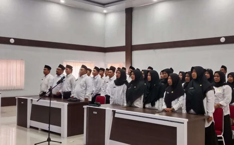Kepahiang, Mediasinardunia.com - Sebanyak 54 sumber daya manusia (SDM) pendamping Program Keluarga Harapan (PKH) dan Taruna Siaga Bencana (Tagana) di Kabupaten Kepahiang resmi dilantik menjadi Pegawai Pemerintah dengan Perjanjian Kerja (PPPK) pada Jumat, 3 Oktober 2025. Pelantikan ini dilaksanakan secara serentak di seluruh Indonesia melalui zoom di Aula Command Centre Pemkab Kepahiang.