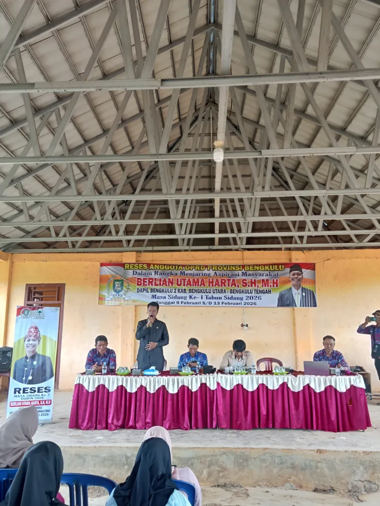 BENGKULU UTARA , Mediasinardunia.com – Anggota DPRD Provinsi Bengkulu, Berlian Utama Harta, melaksanakan kegiatan reses Masa Sidang ke I Tahun Sidang 2026 di daerah pemilihannya (Dapil Bengkulu II) yang meliputi Kabupaten Bengkulu Utara dan Bengkulu Tengah. Kegiatan tersebut digelar di Desa Kinal Jaya, Kecamatan Napal Putih, Kabupaten Bengkulu Utara, Kamis (9/2/2026).