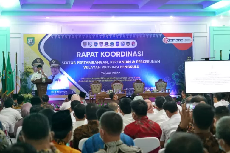 Hal ini dibahas pada Rapat Koordinasi sektor Pertambangan, Pertanian dan Perkebunan wilayah Provinsi Bengkulu, di Balai Raya Semarak, Rabu (16/2/2022).