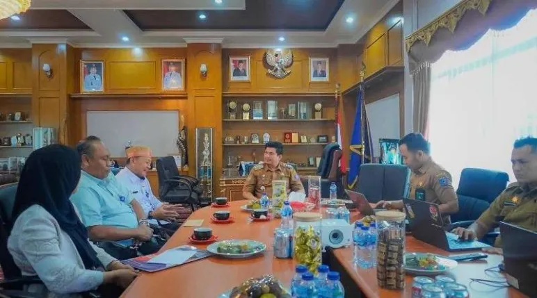 Arga Makmur, Mediasinardunia.com - Bupati Bengkulu Utara, Arie Septia Adinata, S.E, M.Ap, didampingi Kepala Bappelitbangda Bengkulu Utara, H. Dodi Hardinata beserta jajaran, menyambut kedatangan tim Badan Pengawasan Keuangan dan Pembangunan (BPKP) Provinsi Bengkulu dalam rangka audiensi bersama Pemerintah Bengkulu Utara terkait Pulau Enggano, Kecamatan Enggano, Kabupaten Bengkulu Utara pada Selasa (08/07/2025).