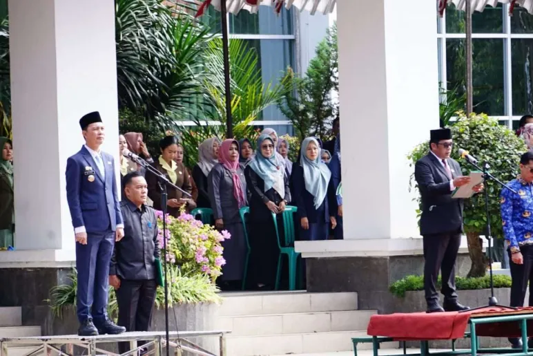 Usai upacara, Bupati dan Wakil Bupati menyaksikan serah terima jabatan 19 pejabat eselon II di lingkungan Pemkab Rejang Lebong.