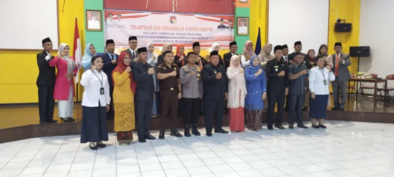 Prosesi pelantikan dan pengambilan sumpah jabatan berlangsung khidmat di Aula Bappelitbangda Kabupaten Mukomuko pada pukul 14.30 WIB.