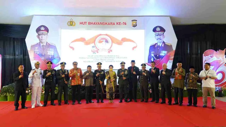 Upacara HUT ke - 76 Kepolisian Republik Indonesia dengan tema 'Polri Yang Presisi Mendukung Pemulihan Ekonomi Dan Reformasi Struktural Untuk Mewujudkan Indonesia Tangguh - Indonesia Tumbuh', bertindak sebagai Inspektur Upacara Presiden RI Ir. Joko Widodo secara virtual yang terpusat di Akademi Kepolisian, Semarang.