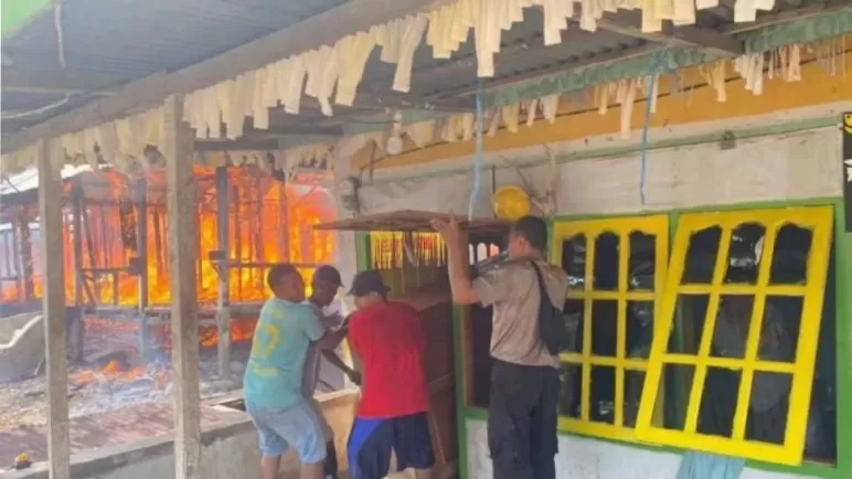 Berdasarkan informasi dari warga setempat, kebakaran dimulai ketika salah satu warga melihat asap tebal dari salah satu ruangan rumah panggung. Akan tetapi, upaya memadamkan api tidak berhasil karena struktur rumah yang mudah terbakar.