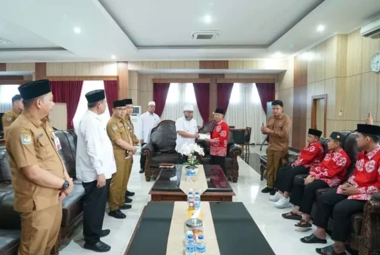 Bengkulu, Mediasinardunia.com - Gubernur Bengkulu, Helmi Hasan, menyambut hangat Kafilah Seleksi Tilawatil Qur’an Nasional (STQN) Provinsi Bengkulu yang akan berlaga di Musabaqah Tilawatil Qur’an Nasional (MTQN) di Sulawesi Tenggara. Audiensi berlangsung di Ruang Kerja Gubernur Bengkulu.