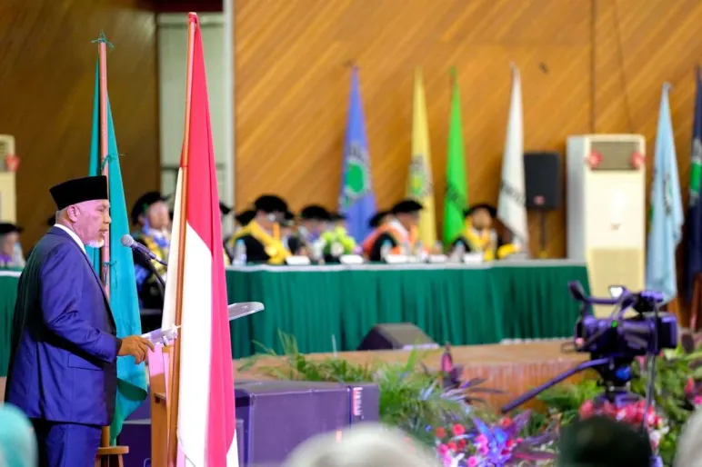 Gubernur juga mengucapkan selamat kepada para wisudawan dan berterima kasih kepada para orang tua yang telah mendampingi perjalanan akademik anak-anak mereka. Ia menekankan bahwa keberhasilan ini adalah amanah besar dari keluarga, almamater, dan Ranah Minang.