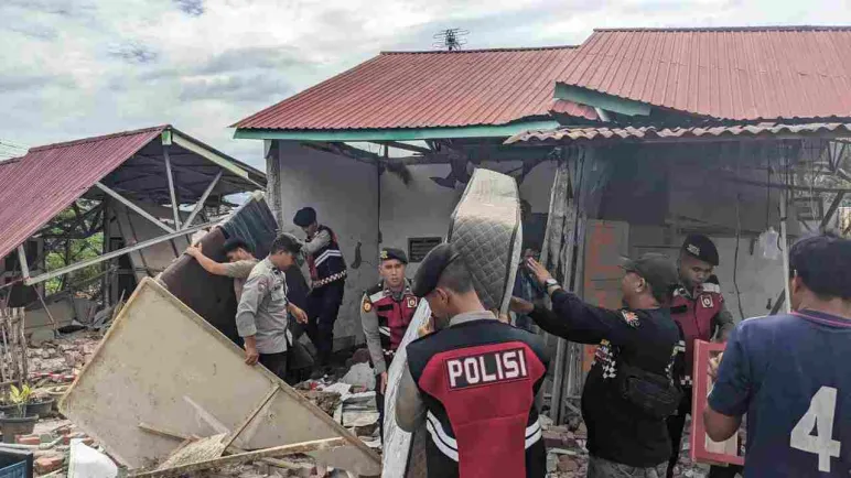 Bengkulu, Mediasinardunia.com - Dalam rangka mempercepat pemulihan pascagempa, personel Samapta dan Brimob Polda Bengkulu diterjunkan untuk melakukan giat pembersihan puing-puing bangunan di wilayah terdampak. Aktivitas ini dilakukan secara intensif dengan menyasar bangunan roboh, jalan yang tertutup material, dan fasilitas umum yang rusak.