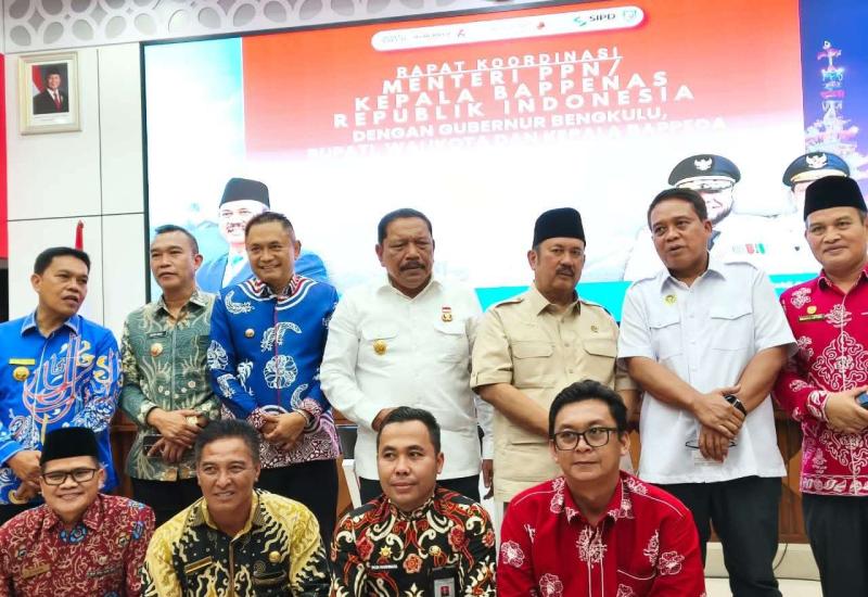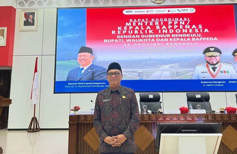 Seluma, Mediasinardunia.com – Sekretaris Daerah Kabupaten Seluma, Deddy Ramdhani, S.E., M.Si., M.A., mengikuti rapat koordinasi bersama Menteri Perencanaan Pembangunan Nasional/Kepala Badan Perencanaan Pembangunan Nasional (Bappenas) RI, Prof. Dr. Ir. Rachmat Pambudy, M.S. Kegiatan tersebut berlangsung di Aula Merah Putih Kantor Gubernur Provinsi Bengkulu, pada Kamis (23/4/2026).