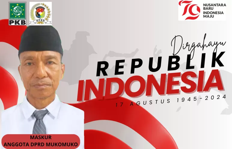 Anggota DPRD Kabupaten Mukomuko, MASKUR. 08/08/24 (Diky/mediasinardunia.com) Banner Anggota DPRD Kabupaten Mukomuko Dari Fraksi PKB Mengucapkan Dirgahayu Republik Indonesia Ke-79 8 Aug 2024 11:57 Submitted by webadmin on 8 August 2024 Mukomuko Berita Terkait Apr 20, 2026 Segenap Tenaga Medis dan Staf RSUD Kabupaten Mukomuko Mengucapkan Selamat Hari Kartini Feb 26, 2026 Kepala Dinas PUPR Mukomuko Mengucapkan Selamat Hari Jadi Kabupaten Mukomuko yang ke-23 Feb 25, 2026 Dinas pertanian kabupaten Mukomuko mengucapkan selamat hari jadi kabupaten Mukomuko ke - 23 Tahun 2026 Feb 24, 2026 Dinas pendidikan dan kebudayaan sekolah SD negeri 04 air Manjuto Kabupaten Mukomuko Mengucapkan Dirgahayu Kabupaten Mukomuko Ke - 23 Feb 18, 2026 Sekda Kabupaten Mukomuko Mengucapkan Selamat Hari Jadi Kabupaten Mukomuko yang Ke-23 Feb 17, 2026 Dinas Pendidikan dan Kebudayaan SDN 14 Penarik Kabupaten Mukomuko Mengucapkan Dirgahayu Kabupaten Mukomuko yang Ke-23