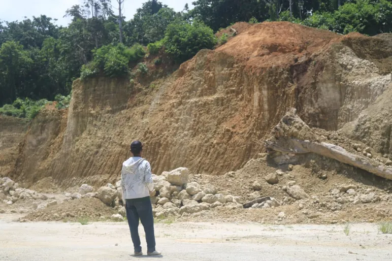 (Penggalian gunung kapur untuk pelapis beton jalan PSN trans Enggano di desa Kaana, 14/11/2024. (saprian/media sinardunia.com)