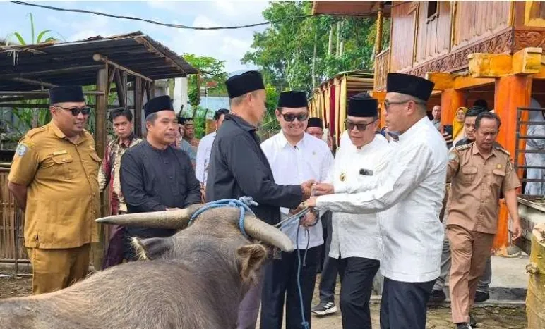 Kepahiang, Mediasinardunia.com - Bertempat di halaman Rumah Adat Pemkab Kepahiang pada Selasa (06/01/2026), Bupati Kepahiang H. Zurdi Nata, S.I.P., Wakil Bupati Ir. Abdul Hafizh, M.Si., dan Ketua DPRD Kepahiang Igor Gregory Dayefiandro, SE., M.Sc., melakukan penyembelihan seekor kerbau.