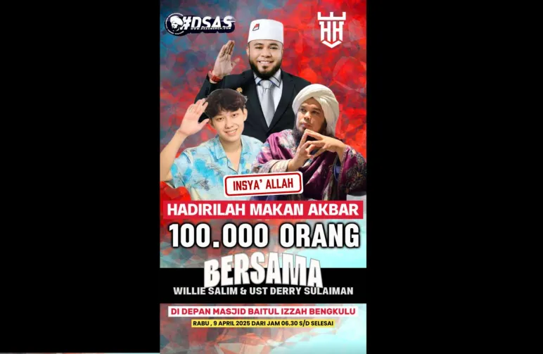 Helmi mengundang konten kreator TikTok fenomenal, Willie Salim, untuk menggelar acara masak akbar yang diperkirakan akan dihadiri hingga 100 ribu orang. Acara ini direncanakan berlangsung pada hari Rabu, 9 April 2025, di pelataran Masjid Raya Baitul Izzah hingga halaman Kantor Gubernur Bengkulu.
