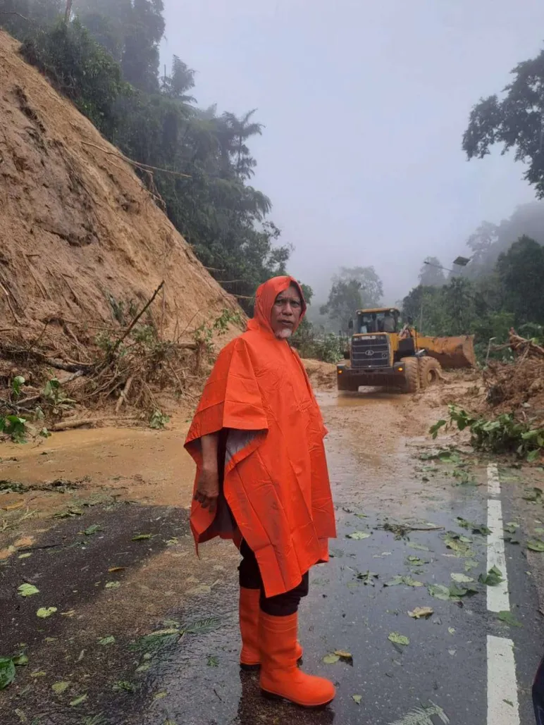 Bencana longsor yang terjadi pada malam Kamis (26/11) menyebabkan tumpukan material longsor menutupi jalanan. Hal ini mendorong Gubernur Sumbar langsung terjun membersihkan material longsor dengan alat seadanya.