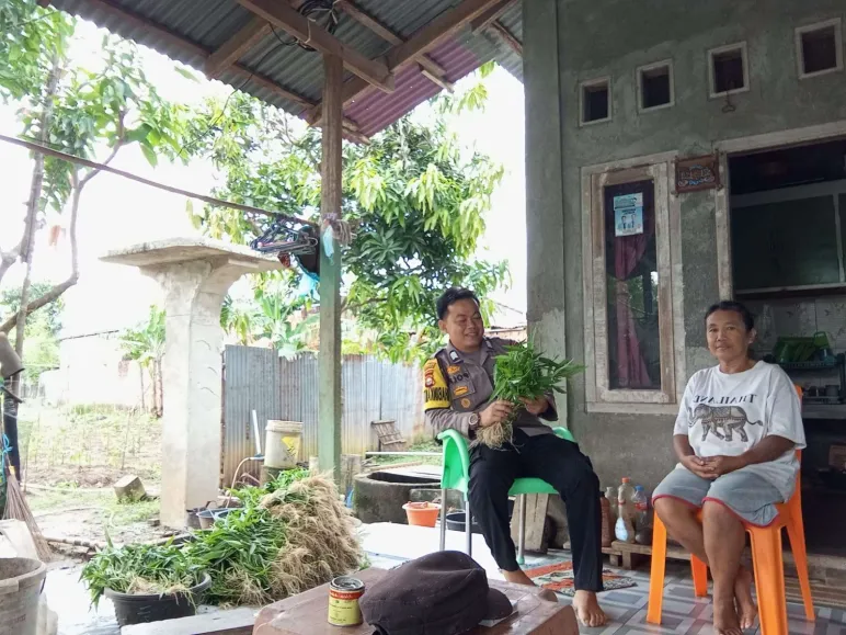 Dengan pendekatan yang humanis, Bhabinkamtibmas memberikan himbauan agar masyarakat lebih proaktif dalam bertani dengan memanfaatkan lahan kosong di sekitar rumah mereka.