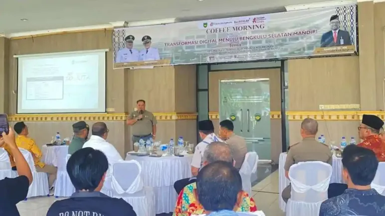 Hal tersebut disampaikan Bupati Bengkulu Selatan, Rifai Tajuddin, saat menggelar kegiatan coffee morning dalam rangka transformasi digital menuju Bengkulu Selatan Mandiri, Kamis (12/02/2026). Kegiatan dilaksanakan di halaman Pendopo Rumah Dinas Bupati Bengkulu Selatan dan dihadiri langsung oleh Bupati Rifai Tajuddin, Wakil Bupati Yevri Sudianto, Sekda Susmanto, Direktur Utama Bank Bengkulu, jajaran Forkopimda, Polres Bengkulu Selatan, Kodim 0408 Bengkulu Selatan, Kejari Bengkulu Selatan, serta para pelaku usaha.