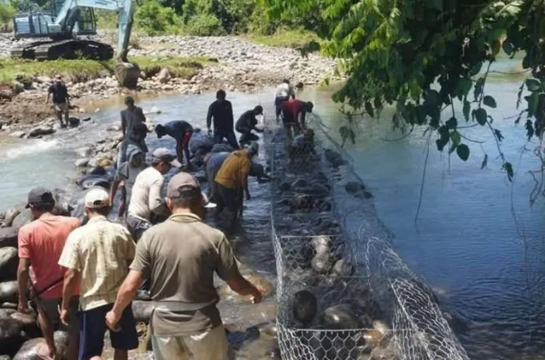 Pemkab Bengkulu Utara dan Kodim 0423/BU Gelar Gotong Royong Pemasangan Bronjong untuk Pemulihan Pertanian Pasca Banjir