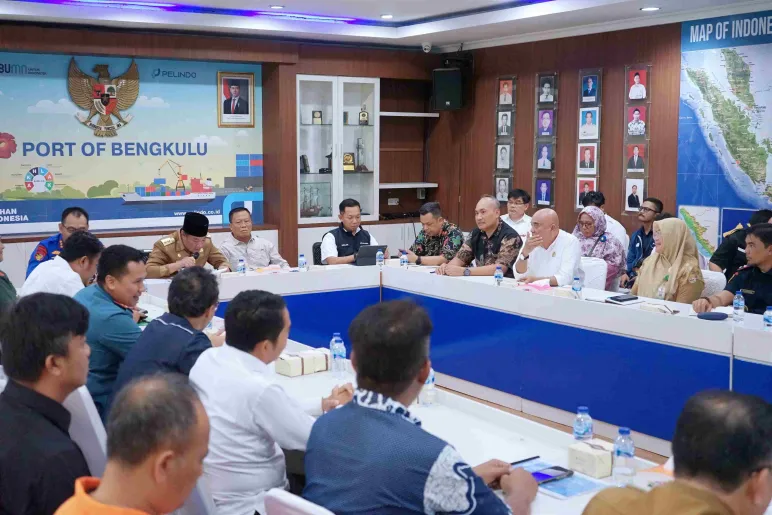 Plt Gubernur Bengkulu, Rosjonsyah, dalam rapat koordinasi bersama pihak terkait di Pelindo II Pulau Baai, Selasa (7/1/2025), menekankan pentingnya percepatan pengerukan alur pelabuhan dan pembangunan penahan abrasi.