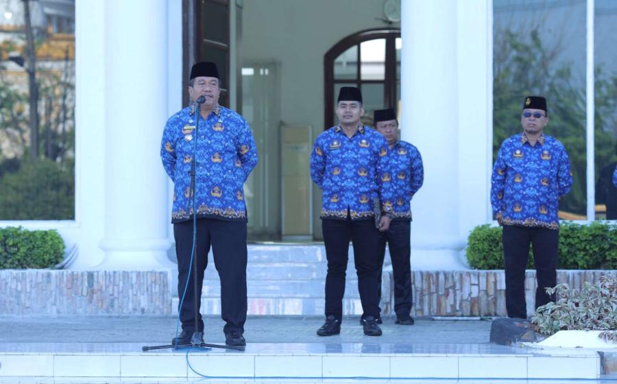 Lebong, Mediasinardunia.com - Bupati Lebong, Azhari, bertindak sebagai pembina dalam apel gabungan y