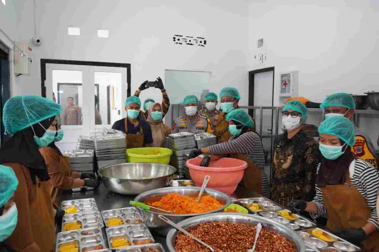 Kepala SPPG Polda Sulteng, Aldino, mengajak Menteri Hukum menelusuri area penyajian hingga dapur utama. Ia menjelaskan proses pengolahan makanan yang disebut sudah mengikuti standar kebersihan dan kualitas gizi.