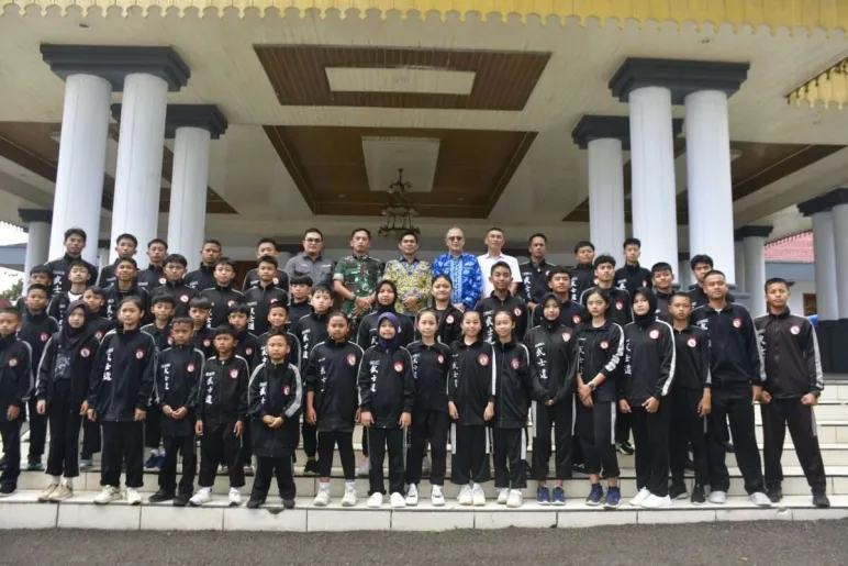 Rejang Lebong, Mediasinardunia.com - Wakil Bupati Rejang Lebong, Dr. H. Hendri Praja, SSTP, M.Si, secara resmi melepas keberangkatan kontingen karate yang akan berlaga dalam ajang Kejurda Rafflesia Karate Open Competition 2025. Prosesi pelepasan digelar di Pendopo Pat Petulai, rumah dinas Bupati, pada Kamis, 18 September 2025, pukul 13.30 WIB.