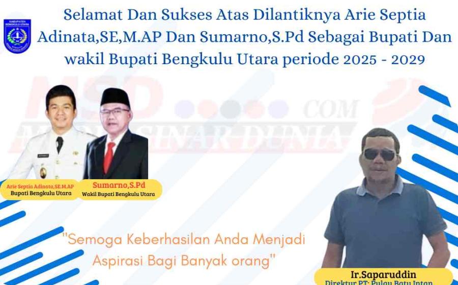Selamat Dan Sukses Atas Dilantiknya Arie Septia Adinata, SE,M.AP Dan Sumarno,S.Pd. Sebagai Bupati Dan wakil Bupati Bengkulu Utara periode 2025 - 2029