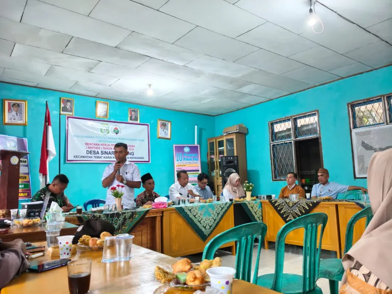 KEPAHIANG, Mediasinardunia.com - Pemerintah Desa Sinar gunung, Kecamatan Tebat Karai, Kabupaten Kepahiang, melaksanakan acara Rencana Kerja Pemerintah Desa (RKPDes) Tahun Anggaran 2026. Acara ini berlangsung pada Kamis, 9 Oktober 2025, dan dihadiri oleh kepala desa, perangkat desa, tokoh masyarakat, Babinsa, Babinkamtibmas, Camat, PMD, Pendamping Desa, dan BPD Desa, Kamis 9/10/2025.