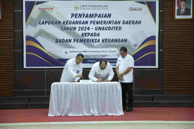 Laporan keuangan unaudited tahun 2024 Pemerintah Kabupaten Asahan tersebut diserahkan langsung oleh Bupati Asahan Taufik Zainal Abidin, S.Sos., M.Si dan diterima langsung Kepala perwakilan BPK Sumatera Utara Paula Henry Simatupang, SE., M.Si., Ak., CA, CFrA, CPA (Aust), CSFA, ACPA, GRCP, GRCA, ERMAP.