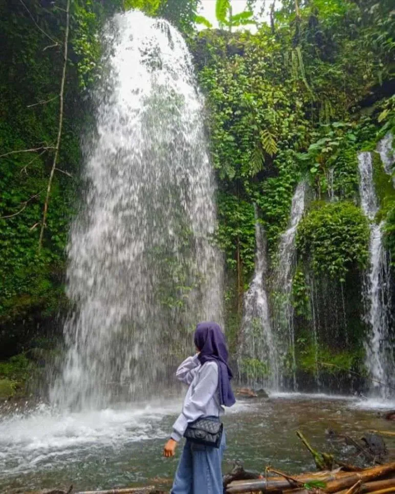 Dari pintu masuk air terjun, pengunjung bisa melanjutkan perjalanan dengan sepeda motor atau berjalan kaki selama sekitar 5 menit. Melewati jalan yang sudah diaspal beton, pengunjung akan disuguhi dengan kebun kopi dan sayuran milik warga sepanjang jalan.