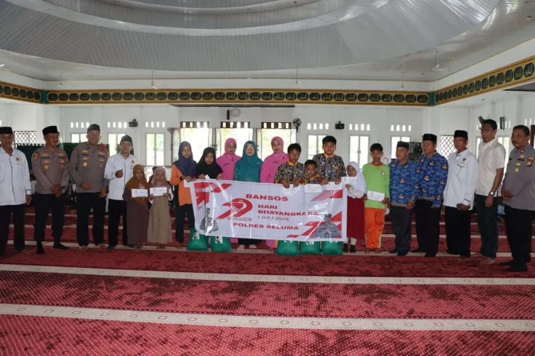 Seluma, Mediasinardunia.com - Pada Selasa, 17 Juni 2025, pukul 10.00 WIB, bertempat di Masjid Falihin Polres Seluma, telah dilaksanakan kegiatan pembagian bantuan sosial kepada anak yatim/piatu dalam rangka memperingati HUT Bhayangkara ke-79.