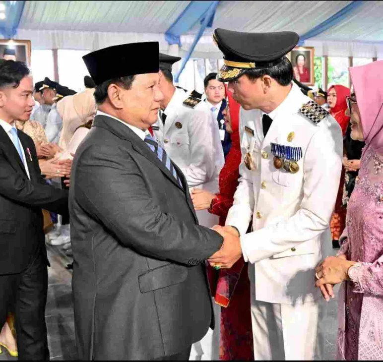 Jakarta, Mediasinardunia.com - Presiden Republik Indonesia, Prabowo Subianto, berkeliling menyalami satu per satu ratusan kepala daerah terpilih usai dilantik di Istana Kepresidenan, Jakarta, Kamis (20/2).