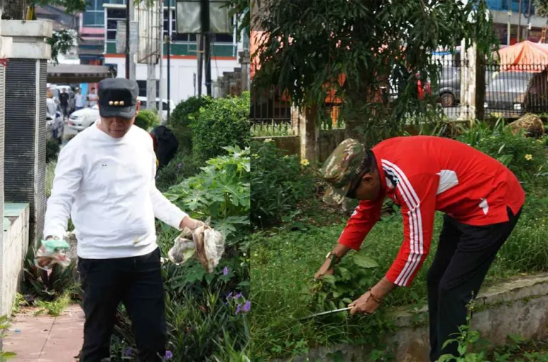 Mereka tidak hanya memberikan perintah, namun Nata-Hafizh, didampingi oleh Sekda Kepahiang, Dr. Hartono, M.Pd, MH, secara aktif memberikan contoh kepada bawahannya dengan turun tangan membersihkan sampah di sekitar Taman Santoso Kepahiang.