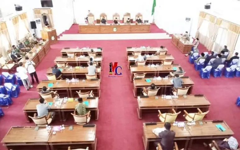 Rapat di Pimpin oleh Ketua DPRD Kabupaten Seluma Nofi Eriyan Andesca, S. Sos. didampingi Waka I Sugeng Zonrio, S.H. dan Waka II Ulil Umidi, S.Sos., M.Si. serta dihadiri 17 Anggota DPRD Seluma, Forkopimda, Pejabat Eselon II dan III di lingkungan Pemerintah Kabupaten Seluma. (MC/Adv)