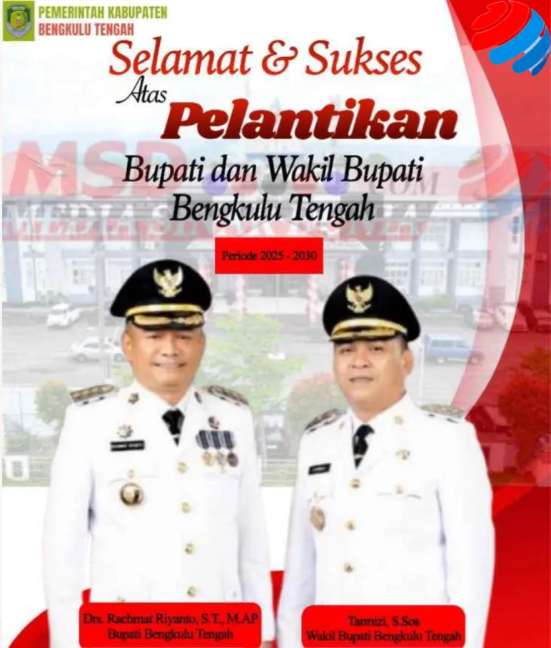 Banner Selamat Dan Sukses Atas Dilantiknya Bupati Dan Wakil Bupati Bengkulu Tengah Periode 2025 - 2030 20 Feb 2025 10:34 Submitted by webadmin on 20 February 2025 Bengkulu Tengah Berita Terkait Apr 20, 2026 Segenap Tenaga Medis dan Staf RSUD Kabupaten Mukomuko Mengucapkan Selamat Hari Kartini Feb 26, 2026 Kepala Dinas PUPR Mukomuko Mengucapkan Selamat Hari Jadi Kabupaten Mukomuko yang ke-23 Feb 25, 2026 Dinas pertanian kabupaten Mukomuko mengucapkan selamat hari jadi kabupaten Mukomuko ke - 23 Tahun 2026 Feb 24, 2026 Dinas pendidikan dan kebudayaan sekolah SD negeri 04 air Manjuto Kabupaten Mukomuko Mengucapkan Dirgahayu Kabupaten Mukomuko Ke - 23 Feb 18, 2026 Sekda Kabupaten Mukomuko Mengucapkan Selamat Hari Jadi Kabupaten Mukomuko yang Ke-23 Feb 17, 2026 Dinas Pendidikan dan Kebudayaan SDN 14 Penarik Kabupaten Mukomuko Mengucapkan Dirgahayu Kabupaten Mukomuko yang Ke-23