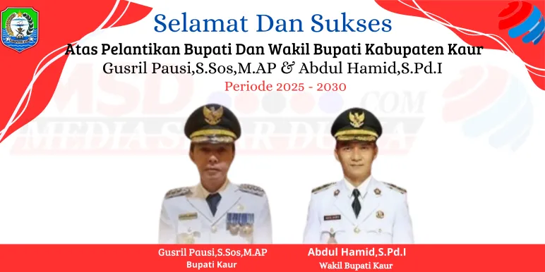 Banner Selamat Dan Sukses Atas Dilantiknya Bupati Dan Wakil Bupati Kabupaten Kaur, Periode 2025 - 2030 20 Feb 2025 10:08 Submitted by webadmin on 20 February 2025 Kaur Berita Terkait Apr 20, 2026 Segenap Tenaga Medis dan Staf RSUD Kabupaten Mukomuko Mengucapkan Selamat Hari Kartini Feb 26, 2026 Kepala Dinas PUPR Mukomuko Mengucapkan Selamat Hari Jadi Kabupaten Mukomuko yang ke-23 Feb 25, 2026 Dinas pertanian kabupaten Mukomuko mengucapkan selamat hari jadi kabupaten Mukomuko ke - 23 Tahun 2026 Feb 24, 2026 Dinas pendidikan dan kebudayaan sekolah SD negeri 04 air Manjuto Kabupaten Mukomuko Mengucapkan Dirgahayu Kabupaten Mukomuko Ke - 23 Feb 18, 2026 Sekda Kabupaten Mukomuko Mengucapkan Selamat Hari Jadi Kabupaten Mukomuko yang Ke-23 Feb 17, 2026 Dinas Pendidikan dan Kebudayaan SDN 14 Penarik Kabupaten Mukomuko Mengucapkan Dirgahayu Kabupaten Mukomuko yang Ke-23