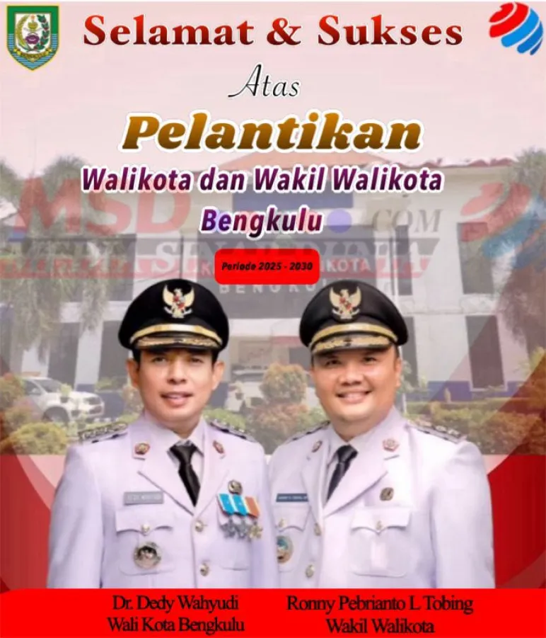 Banner Selamat Dan Sukses Atas Dilantiknya Wali Kota Dan Wakil Wali Kota Bengkulu, Periode 2025 - 2030 20 Feb 2025 10:10 Submitted by webadmin on 20 February 2025 Kota Bengkulu Berita Terkait Apr 20, 2026 Segenap Tenaga Medis dan Staf RSUD Kabupaten Mukomuko Mengucapkan Selamat Hari Kartini Feb 26, 2026 Kepala Dinas PUPR Mukomuko Mengucapkan Selamat Hari Jadi Kabupaten Mukomuko yang ke-23 Feb 25, 2026 Dinas pertanian kabupaten Mukomuko mengucapkan selamat hari jadi kabupaten Mukomuko ke - 23 Tahun 2026 Feb 24, 2026 Dinas pendidikan dan kebudayaan sekolah SD negeri 04 air Manjuto Kabupaten Mukomuko Mengucapkan Dirgahayu Kabupaten Mukomuko Ke - 23 Feb 18, 2026 Sekda Kabupaten Mukomuko Mengucapkan Selamat Hari Jadi Kabupaten Mukomuko yang Ke-23 Feb 17, 2026 Dinas Pendidikan dan Kebudayaan SDN 14 Penarik Kabupaten Mukomuko Mengucapkan Dirgahayu Kabupaten Mukomuko yang Ke-23