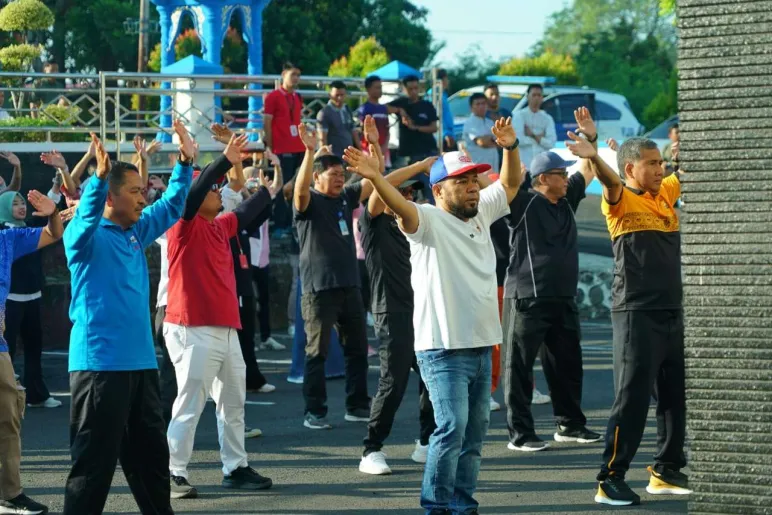 Bengkulu, Mediasinardunia.com - Suasana halaman Kantor Badan Pengawasan Keuangan dan Pembangunan (BPKP) Perwakilan Bengkulu pada Jumat pagi (13/6) terasa berbeda dari biasanya. Musik senam yang energik bergema, tawa bersahutan, dan peluh bercucuran. Gubernur Bengkulu, Helmi Hasan, bersama jajaran Forum Koordinasi Pimpinan Daerah (Forkopimda) dan para pejabat instansi vertikal, larut dalam semangat gerak bersama.
