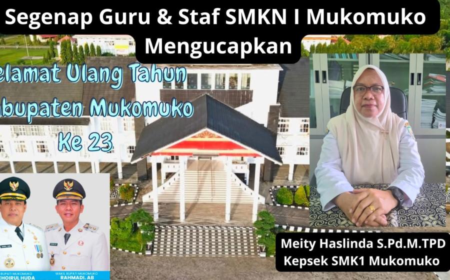 Banner | 17 February 2026 Segenap Guru Beserta Staf SMKN 1 Mukomuko Mengucapkan Selamat Ulang Tahun Kabupaten Mukomuko yang Ke-23 Read more