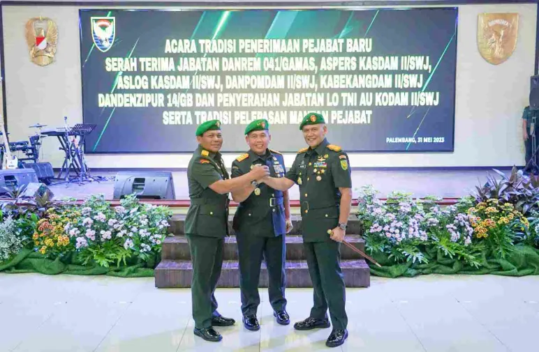 Prosesi upacara Sertijab Danrem 041/Gamas ditandai dengan penyerahan tanda jabatan dan Tongkat Komando serta Tunggul Korem 041/Gamas oleh Pangdam II/Swj kepada pejabat baru Brigjen TNI Rachmad Zulkarnaen. Brigjen TNI Rachmad Zulkarnaen, adalah lulusan Akmil Tahun 1993 sebelumnya berdinas sebagai Perwira Tenaga Ahli Pengkaji Madya Bid. Demografi Lemhannas, sementara Brigjen TNI Dr. A. Budi Handoyo, M. Tr. ( Han ), , akan pindah dan bertugas sebagai Direktur Pendidikan ( Dirdik ) Seskoad.