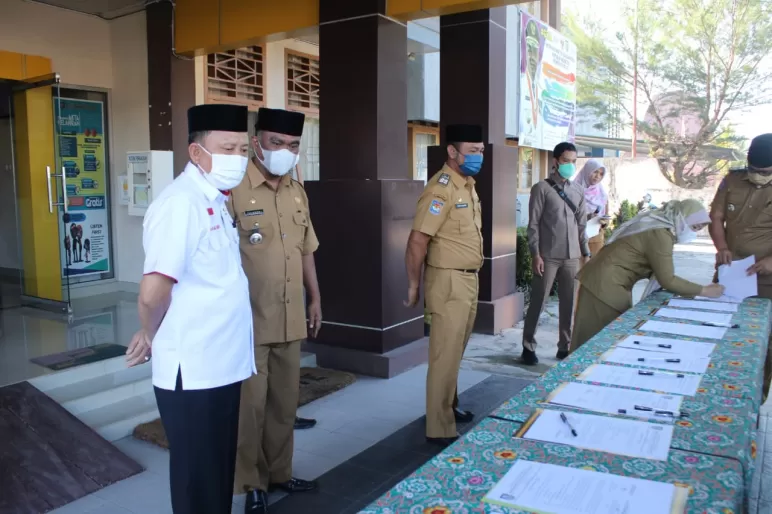 Usai Apel Pagi, Sekda Hamka Sabri juga menyaksikan Penandatanganan Perjanjian Kinerja Pejabat Eselon III dan Eselon IV/Sub Koordinator Fungsional di Lingkungan Dinas Dukcapil Provinsi Bengkulu.