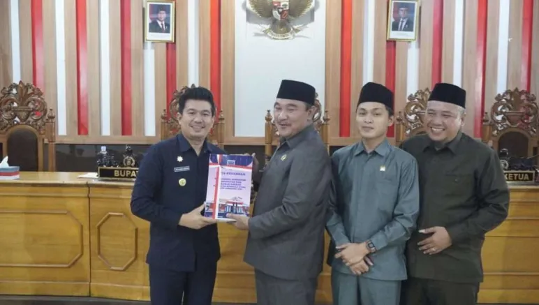 Bupati Bengkulu Utara, Arie Septia Adinata, SE, M.AP, menyerahkan Nota Pengantar Raperda APBD 2026 kepada Ketua DPRD. Dalam penyampaiannya, Arie menegaskan penyusunan APBD 2026 mengacu pada peraturan perundang-undangan yang berlaku, termasuk PP Nomor 12 Tahun 2019 dan Permendagri Nomor 14 Tahun 2025.