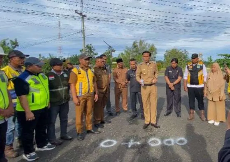 Kaur, Mediasinardunia.com - Bupati Kaur Gusril Pausi, S.Sos., M.AP bersama Wakil Bupati Kaur Abdul Hamid, S.Pd.i secara resmi melakukan titik nol peningkatan jalan dua jalur menuju perkantoran Padang Kempas untuk memberikan rasa aman dan nyaman bagi pengendara pada Senin, 14 Juli 2025.
