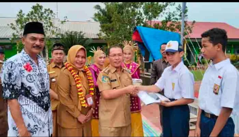 Mukomuko - mediasinardunia.com - Bupati Mukomuko Sapuan SE, MM, AK, CA, CPA membagikan membagikan seragam sekolah gratis kepada murid baru tingkat SD dan SMP Negeri dan swasta yang tersebar di 15 kecamatan di Mukomuko. Kabupaten Mukomuko Pembagian seragam sekolah secara seremonial ini dilakukan langsung oleh Bupati Mukomuko H. Sapuan SE, MM, AK, CA, CPA di SMP Negeri 13 Lubuk Sanai Kecamatan XIV Koto pada Senin, 24/07/2023.
