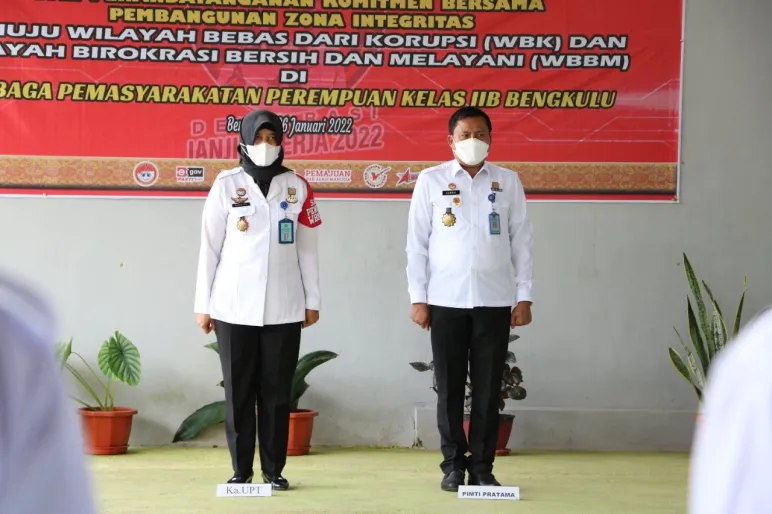 Kementerian Hukum dan HAM Republik Indonesia melaksanakan kegiatan Deklarasi Janji Kinerja serta Penandatanganan Komitmen Bersama Pembangunan Zona Integritas Menuju Wilayah Bebas Korupsi (WBK) dan Wilayah Birokrasi Bersih Melayani (WBBM) Kemenkumham Republik Indonesia (RI) Tahun 2022 di Lembaga Ketahanan Kemasyarakatan Perempuan kelas IIB Bengkulu.Rabu.26/01/2020.